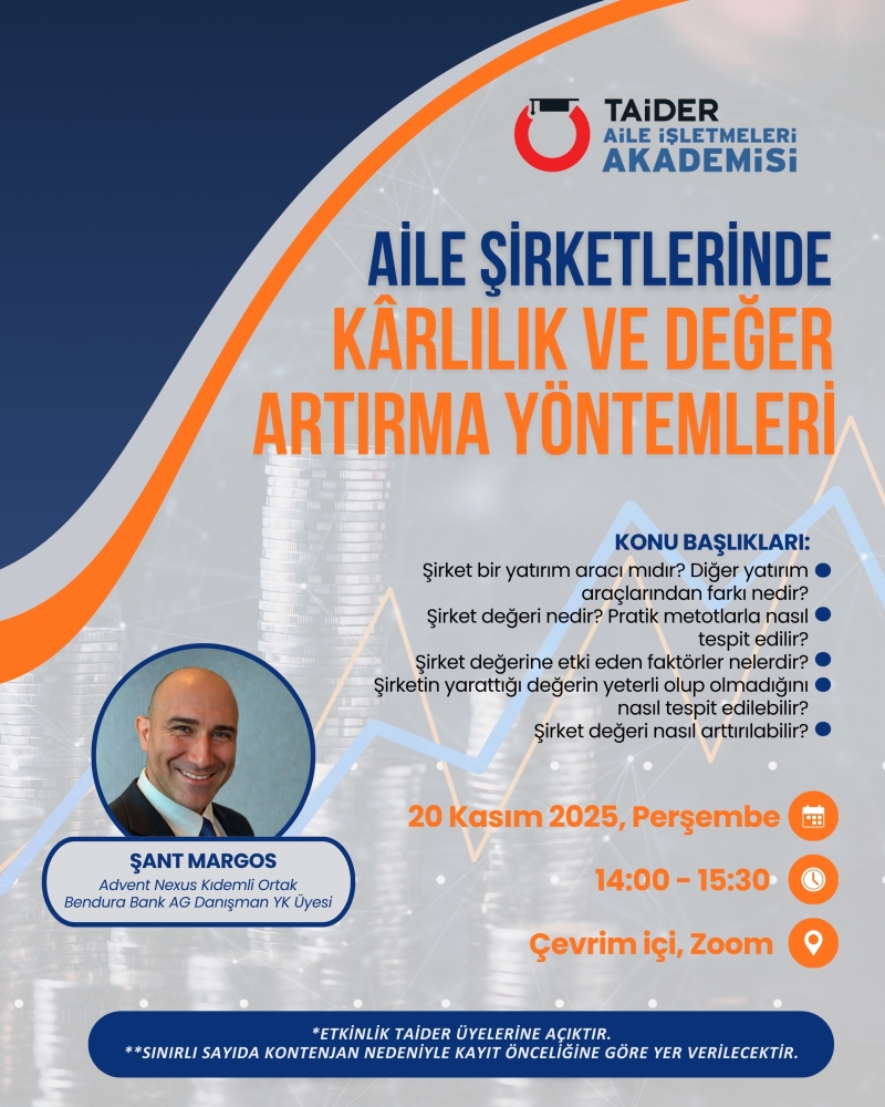 20 Kasım 2025 TAİDER Akademi "Aile Şirketlerinde Karlılık ve Değer Artırma Yöntemleri" Webinarı