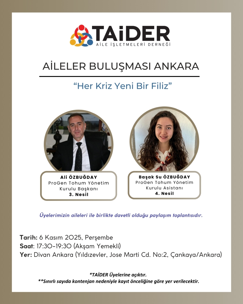 Dün akşam TAİDER Ankara Aileler Buluşması’nda değerli üyemiz Özbuğday Tarım İşletmeleri ve Tohumculuk’un hüzün ve umutla harmanlanmış hikayesini dinledik.