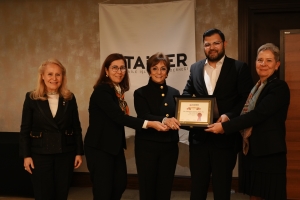 Aynı akşam kurumsal üyemiz Mor Aluminyum adına Hasan Mert Dönmez’e üyelik belgesini ve rozetini takdim ettik.