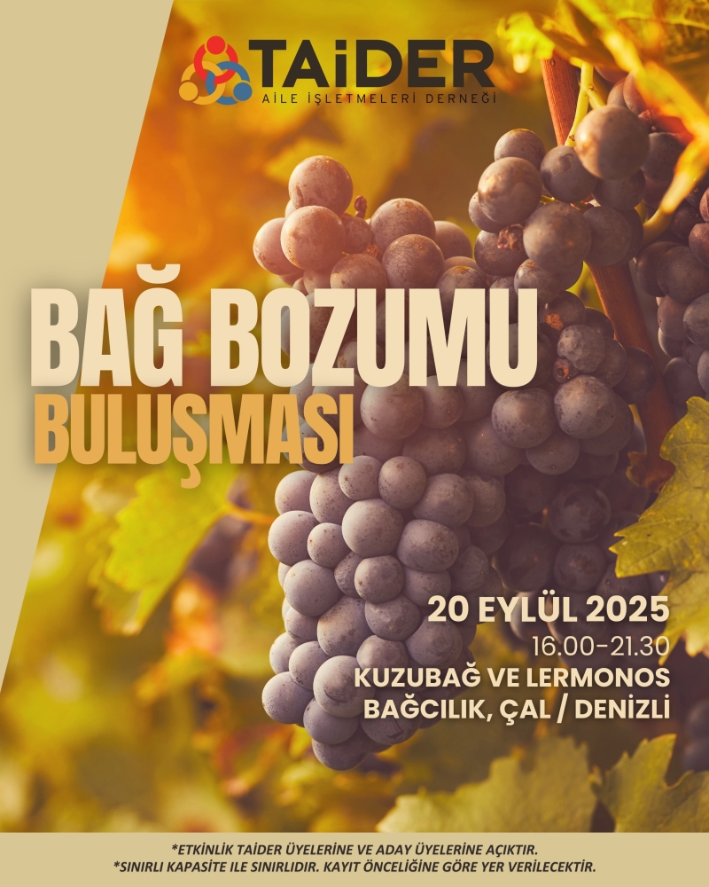 Denizli il temsilciliği tarafından TAİDER üyeleri arasındaki iletişimi güçlendirmek ve yeni aile işletmeleriyle tanışmak için planlanan etkinlikte önce Çal’da Kuzubağ Şarapçılık’ta bağbozumu yapıldı, şarabın yolculuğuna tanıklık ettikten sonra tadım gerçekleştirildi.
