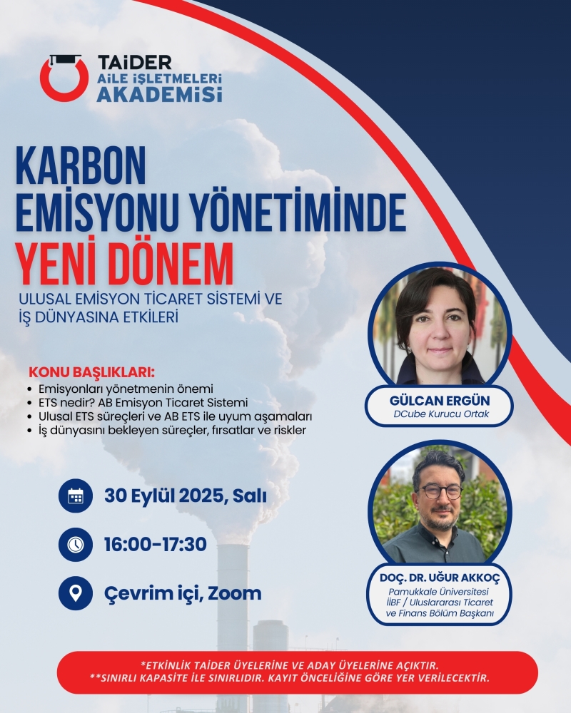 30 Eylül 2025 TAİDER Akademi “Karbon Emisyonu Yönetiminde Yeni Dönem" Webinarı