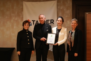 Aynı akşam kurumsal üyemiz Mor Aluminyum adına Hasan Mert Dönmez’e üyelik belgesini ve rozetini takdim ettik.