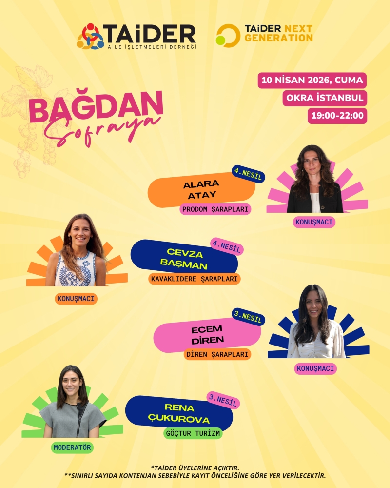 The "From Vineyard to Table" event, which took place in the unique view of Istanbul on Friday, April 10, under the collaboration of TAİDER Next Generation Community and Gastronomy Community, witnessed colorful moments and unforgettable memories. After an enjoyable conversation about the world of wine, including the brand stories we heard from the next generation members of 3 family companies that produce wine, the families' wines were experienced; the dinner was enriched with a piano recital. Thank you to everyone who participated.