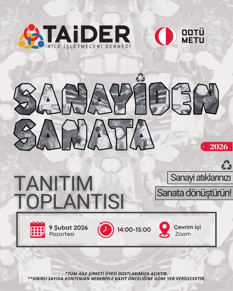 Kültür ve Sanat Topluluğumuz tarafından bu yıl üçüncüsü gerçekleştirilecek olan “Sanayiden Sanata” Projesi, atıklarını sürdürülebilir ve yaratıcı bir yaklaşımla dönüştürmek isteyen aile işletmeleri için ilham verici bir iş birliği fırsatı sunmaktadır. Proje, 2026 yılında Orta Doğu Teknik Üniversitesi (ODTÜ) Endüstriyel Tasarım Bölümü öğrencilerinin Malzeme Yoluyla Tasarım (Design Through Materials) dersi kapsamında dahil olduğu özel bir iş birliğiyle hayata geçirilecektir.